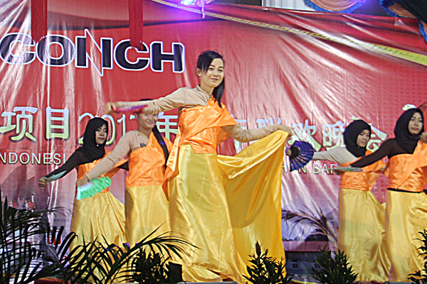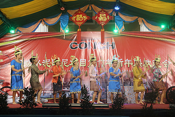 北蘇海螺總經(jīng)理曾國華先生與公司員工一同為大家?guī)淼母璋槲琛禟ota Manado》,并獻上精彩的舞蹈《Modern etnik contemporer》,讓大家從歌舞中領(lǐng)略馬納多的美麗和熱情。