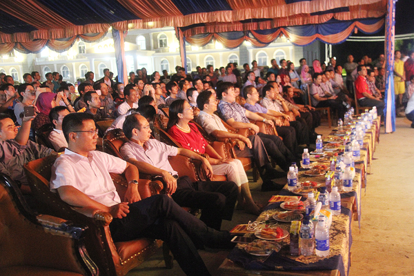晚會在熱烈的掌聲和美麗的禮花中開始,Upau鎮(zhèn)高中首先帶來了開場舞《Tarian Giring Giring dan mandau》,歡快的舞姿、動感的節(jié)奏以及別具特色的民族服裝,讓人領(lǐng)略到濃濃的異域風情。