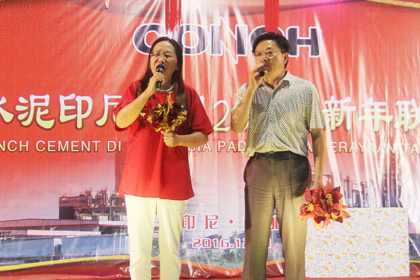 西巴項目總經(jīng)理俞越攜妻子給我們帶來動聽的歌曲《為了誰》,悠揚的歌聲唱出了集團公司印尼項目廣大干部員工的心聲,激勵大家不懈奮斗地“發(fā)揚海螺企業(yè)精神,踐行一帶一路戰(zhàn)略”。