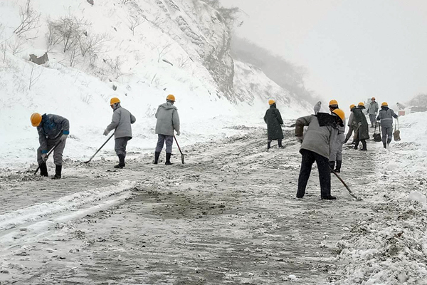撒鹽融雪后清掃礦運(yùn)道路
