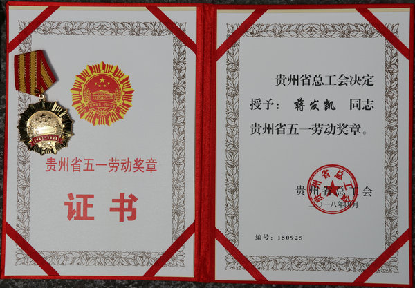 2018年4月27日,在貴州省慶祝“五一”國(guó)際勞動(dòng)節(jié)暨表彰大會(huì)上,貴陽(yáng)海螺ckk主管蔣發(fā)凱榮獲貴州省五一勞動(dòng)獎(jiǎng)?wù)隆?/FONT>