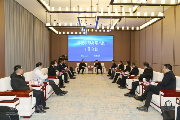 儀式結(jié)束后,楊軍一行與宣城市委、市政府領(lǐng)導(dǎo)進(jìn)行了工作會談。雙方表示,宣城是海螺集團(tuán)的發(fā)祥地,宣城市與海螺集團(tuán)淵源深厚,雙方轉(zhuǎn)型發(fā)展方向一致,近年來在各領(lǐng)域合作日益緊密。雙方要加強(qiáng)對接、細(xì)化舉措、強(qiáng)化保障,為海螺建筑光伏項目建設(shè)運(yùn)營創(chuàng)造良好環(huán)境。同時,要持續(xù)深化地企合作,積極響應(yīng)國家碳達(dá)峰、碳中和號召,搶抓綠色低碳發(fā)展機(jī)遇,聚力節(jié)能降碳和產(chǎn)業(yè)轉(zhuǎn)型升級,加強(qiáng)新能源、新材料上下游產(chǎn)業(yè)鏈的深層次、全方位合作,攜手推進(jìn)更高質(zhì)量發(fā)展,實(shí)現(xiàn)互利共贏,為安徽經(jīng)濟(jì)社會發(fā)展貢獻(xiàn)更大力量。