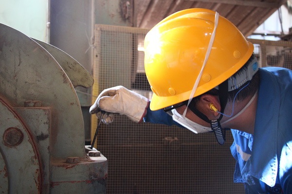 蕪湖海螺1號窯1218皮帶減速機(jī)前,巡檢工章利正在對減速機(jī)油位進(jìn)行檢查,他說:“巡檢是直接接觸設(shè)備的工作,要確保安全穩(wěn)定,不能出一絲紕漏?!保埿玛?攝)