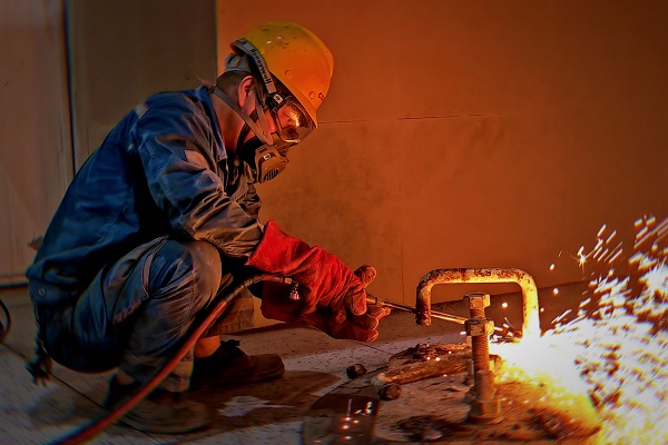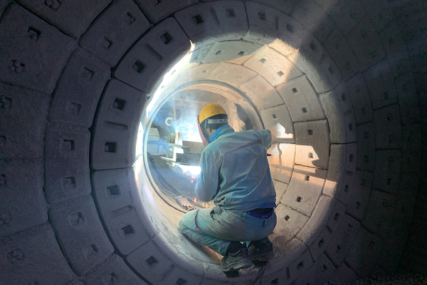 窯檢修現(xiàn)場,機(jī)械維修工張紅勝全神貫注地操作著氣割槍,即便得心應(yīng)手,他也始終保持謹(jǐn)慎與專注。(王凱/攝)