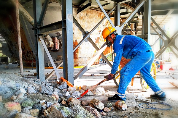 8月2日,達(dá)州海螺窯檢修步入尾聲,巡檢工馮圣超正在對檢修過程更換的澆注料等進(jìn)行清理。(段益平/攝)