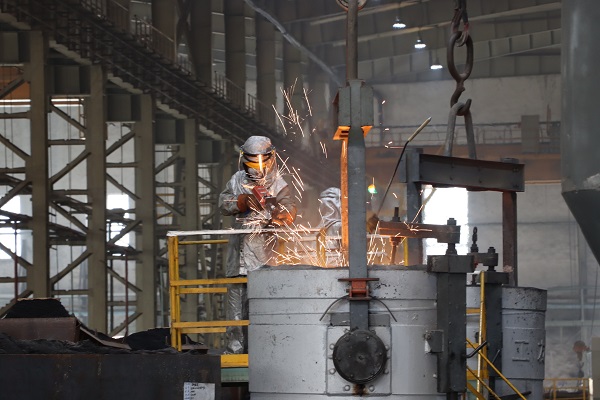 8月17日清晨,海川裝備公司180輥壓機(jī)軸承座澆注生產(chǎn)作業(yè)正在緊張有序地進(jìn)行中,為了保證這個(gè)重達(dá)近10噸的“大家伙”最終的澆注質(zhì)量,鑄造分廠澆注工程國強(qiáng)正在和工友們進(jìn)行著最后的測溫工作,厚重的鋁箔防火隔熱服內(nèi),汗水順著皮膚不斷滑落,而他們依舊全神貫注,他說:“鋼包測溫是澆注工序的最后一項(xiàng)重要工作,必須保證每個(gè)動作規(guī)范到位,心靜自然涼,專注在手上,也就感覺不到熱了?!保▍雾嵶?攝)