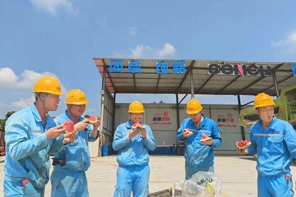 搶進(jìn)度、穩(wěn)運(yùn)行、抓生產(chǎn),這群可愛可敬的身影穿梭于生產(chǎn)一線,陽光照耀下,他們面龐上的汗水愈發(fā)顯得晶瑩。一心抓安全生產(chǎn)的他們,也同樣需要得到保護(hù),從西瓜、冰鎮(zhèn)綠豆湯、酸梅湯,到仁丹、十滴水,鏡頭下,接過防暑降溫品的他們,露出了質(zhì)樸真誠的笑容,這就是夏日里海螺水泥一線員工群像。