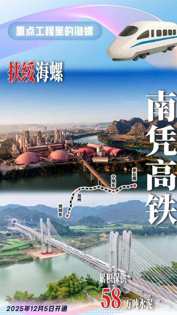 扶綏海螺為南憑高鐵崇左至憑祥段項(xiàng)目建設(shè)累積供應(yīng)58萬(wàn)噸高品質(zhì)水泥。