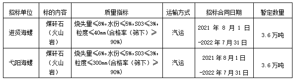根據(jù)2021年8月-2022年1月進(jìn)賢海螺煤矸石需求,計(jì)劃進(jìn)行公開招標(biāo),選定中標(biāo)人,為體現(xiàn)公平、公正、公開的原則,拓寬采購渠道,現(xiàn)將招標(biāo)相關(guān)事宜公告如下: