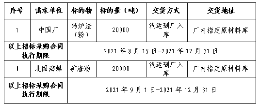 1.1中國廠、北固海螺2021年下半年轉爐渣(粉)、礦渣粉采購招標業(yè)務招標編號:JSGY-20210704;