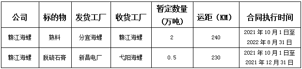 根據(jù)生產(chǎn)經(jīng)營(yíng)需要,江西贛江海螺水泥有限責(zé)任公司對(duì)分宜海螺至贛江海螺熟料、新昌電廠至弋陽(yáng)海螺脫硫石膏運(yùn)輸業(yè)務(wù)進(jìn)行公開招標(biāo),為進(jìn)一步體現(xiàn)“公開、公平、公正”的原則,增加運(yùn)輸定價(jià)透明度,現(xiàn)發(fā)布公開招標(biāo)信息,歡迎有運(yùn)輸能力的運(yùn)輸單位報(bào)名參加此次招標(biāo)活動(dòng),現(xiàn)將有關(guān)事項(xiàng)公示如下: