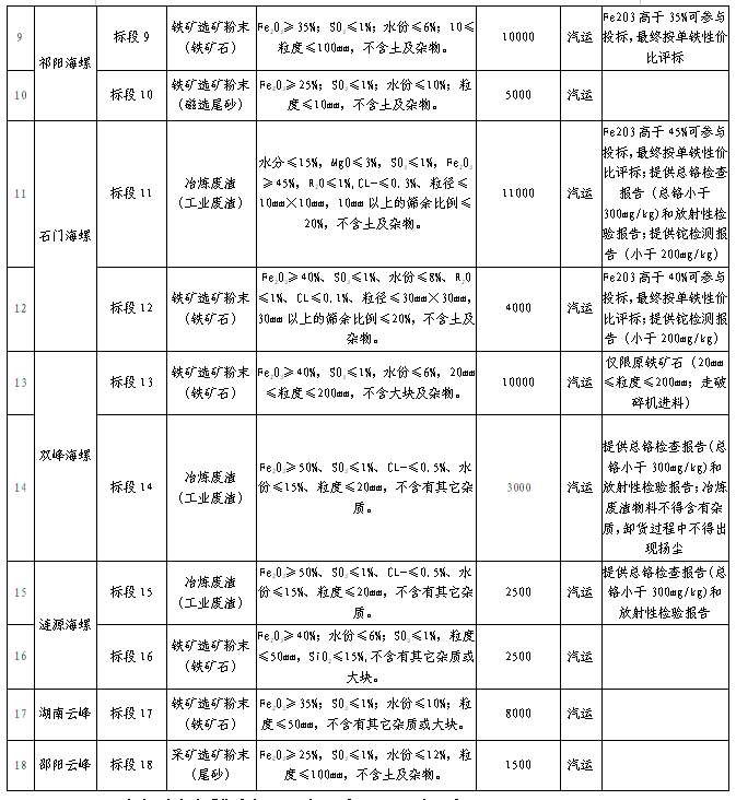 4、報名參與石門海螺冶煉廢渣(工業(yè)廢渣)、鐵礦選礦粉末(鐵礦石)的投標(biāo)單位需提供鉈檢測報告(小于200mg/kg)。