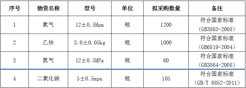 1.招標(biāo)物資名稱:工業(yè)氣體(氧氣、乙炔、氮氣、二氧化碳)。