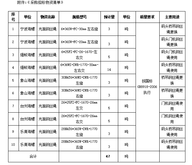 1、招標項目名稱:光面鋼絲繩
