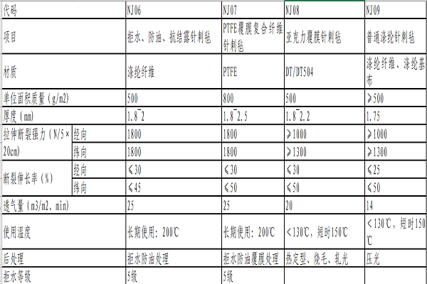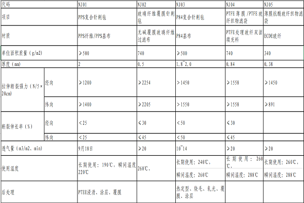 3.濾袋技術(shù)指標(biāo)