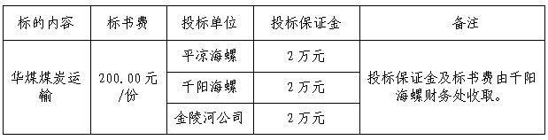 1.標(biāo)的內(nèi)容:華煤各礦點(diǎn)至平?jīng)龊B?、千陽海螺及金陵河公司煤炭運(yùn)輸。
