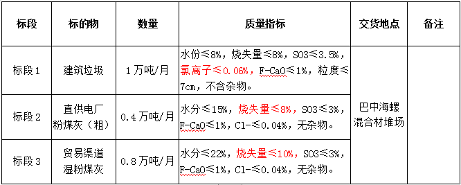 5.投標(biāo)報名單位需具有較強的保供能力,其中建筑垃圾月供貨能力不低于0.5萬噸;粉煤灰投標(biāo)渠道若為直供,不設(shè)置最低供貨量,若為貿(mào)易渠道,月供貨能力不低于0.3萬噸,且貿(mào)易渠道貨源不能為四川廣旺電力公司嘉川電廠、代池壩電廠和南江煤電公司粉煤灰資源。