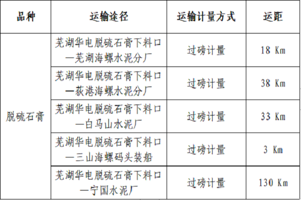 3、合同期限:粉煤灰、脫硫石膏、干爐渣合同期限為2022年5月1日至2023年4月30日(注:本次招標為預(yù)招標,若蕪湖海螺水泥有限公司未取得2022-2023年度安徽華電蕪湖發(fā)電有限公司發(fā)電副產(chǎn)品包銷權(quán),本次招標按照流標處理)。