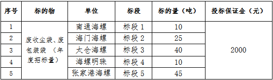 (一)標的內(nèi)容:廢收塵袋、廢包裝袋等。