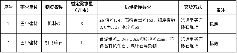 1.標(biāo)的內(nèi)容:機(jī)制砂、機(jī)制碎石