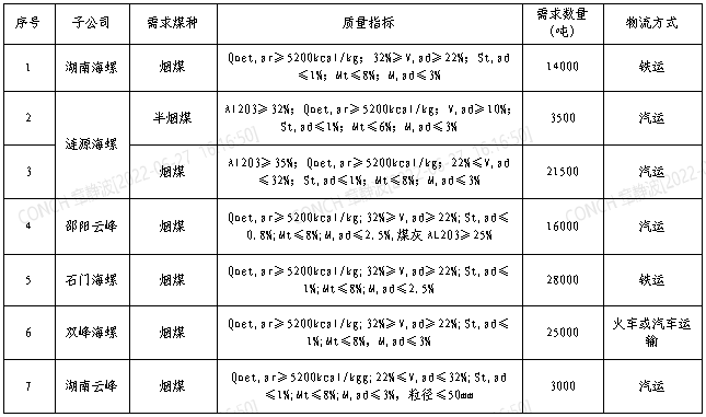 2.各投標(biāo)單位原則上需具備從2022年7月21日起供貨的能力,其中考慮邵陽云峰煤炭庫容較小,日供邵陽云峰煤炭量原則上需具備在1000噸以上;