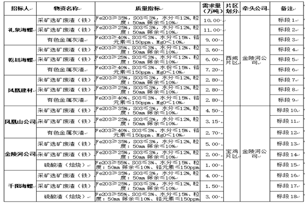 說明:其中采礦選礦廢渣為原礦資源,不允許摻配含鐵工業(yè)廢渣,對于違約情形,按照合同約定處罰。