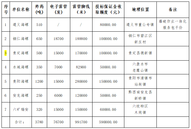 貴州區(qū)域7家子公司外委爆破服務(wù)合同于2022年12月31日到期,為確保各公司外委爆破服務(wù)的連續(xù)性,按照“一區(qū)一策”采購權(quán)限劃分要求,供應(yīng)專業(yè)組擬開展2023年度區(qū)域外委爆破、安全監(jiān)理及評估服務(wù)聯(lián)合招標(biāo)工作?,F(xiàn)將相關(guān)事宜公示如下:
