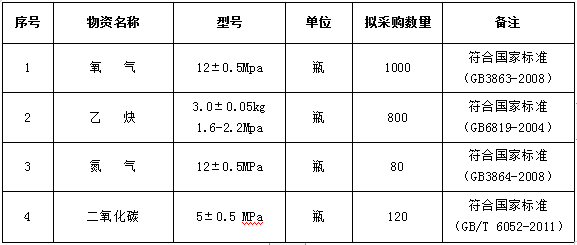 3.標(biāo)的質(zhì)量及使用要求:氣體質(zhì)量須符合國(guó)家質(zhì)量標(biāo)準(zhǔn)。