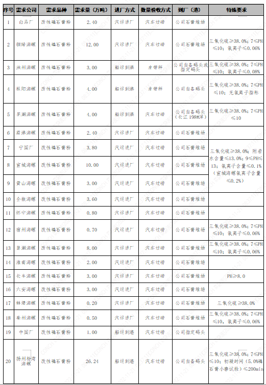根據(jù)海螺水泥各公司生產(chǎn)經(jīng)營計劃,安徽銅陵海螺水泥有限公司聯(lián)合華東及中部地區(qū)部分公司對改性磷石膏粉、原狀酸性磷石膏粉進行聯(lián)合招標,為進一步體現(xiàn)公平、公正、公開的原則,拓寬采購渠道,提高采購質量,現(xiàn)將招標采購信息發(fā)布如下: