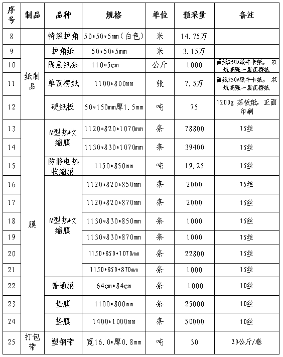 根據(jù)公司生產(chǎn)經(jīng)營計劃,為確保2023-2024年度產(chǎn)品包裝需求;現(xiàn)本著“公開、公平、公正、透明”的原則公開招標,誠邀經(jīng)營能力較好、產(chǎn)品質量合格、保供和服務能力較強的包裝材料生產(chǎn)單位參加投標,現(xiàn)將有關事項公告如下: