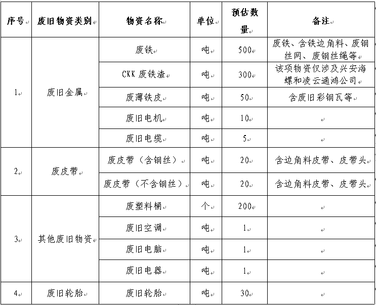 1.包含但不限于以上廢舊物資類別,同時(shí)數(shù)量?jī)H為預(yù)估數(shù)量,具體數(shù)量以實(shí)際過磅或點(diǎn)數(shù)回收數(shù)量為準(zhǔn)。
