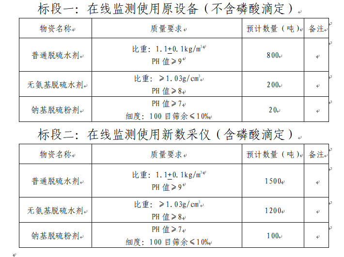 3.質(zhì)量指標:滿足國家化工合格品相關(guān)質(zhì)量控制標準,產(chǎn)品對設(shè)備無腐蝕,對熟料質(zhì)量和正常生產(chǎn)無影響。同時預(yù)計招標人將在2024年2月份開始在線監(jiān)測使用新數(shù)采儀(含磷酸滴定),要求中標單位提前做好相關(guān)準備,屆時收到招標人正式通知后馬上啟動。