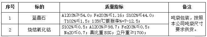 1.1招標(biāo)名稱:安徽海螺暹羅耐火材料有限公司2024年1-2季度藍(lán)晶石和燒結(jié)氧化鋁二次招標(biāo)。