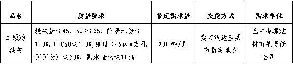 為進(jìn)一步提升二級粉煤灰采購招標(biāo)的公平、公正、公開透明性,根據(jù)巴中海螺建材二級粉煤灰需求,現(xiàn)組織開展二級粉煤灰公開招標(biāo),特將招標(biāo)事宜公告如下: