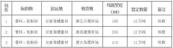 4.運(yùn)輸數(shù)量:各包件均暫定12萬噸,以上均為預(yù)計(jì)數(shù)量,具體數(shù)量以實(shí)際為準(zhǔn)。