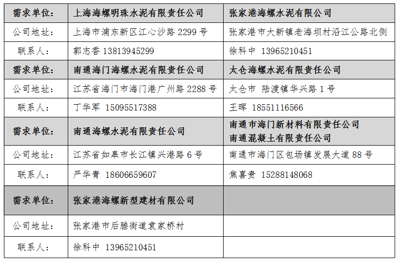 明珠海螺面向上海市,其他江蘇境內(nèi)公司面向江蘇省公開招標,其中危廢投標人應(yīng)具備“三證合一”企業(yè)營業(yè)執(zhí)照(經(jīng)營范圍必須包含“相應(yīng)危險廢物處置”等相關(guān)內(nèi)容),開戶許可證,省、市環(huán)保廳(局)頒發(fā)的危險廢物經(jīng)營許可證、危險廢物運輸合同、運輸單位營業(yè)執(zhí)照、道路危險貨物運輸許可證等相關(guān)資料,并要求以上證件均在有效期范圍內(nèi)。