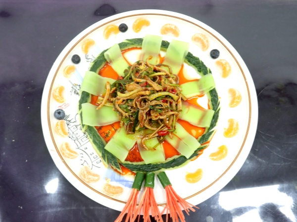 主要食材:豬肚、萵筍、香菜、辣椒油