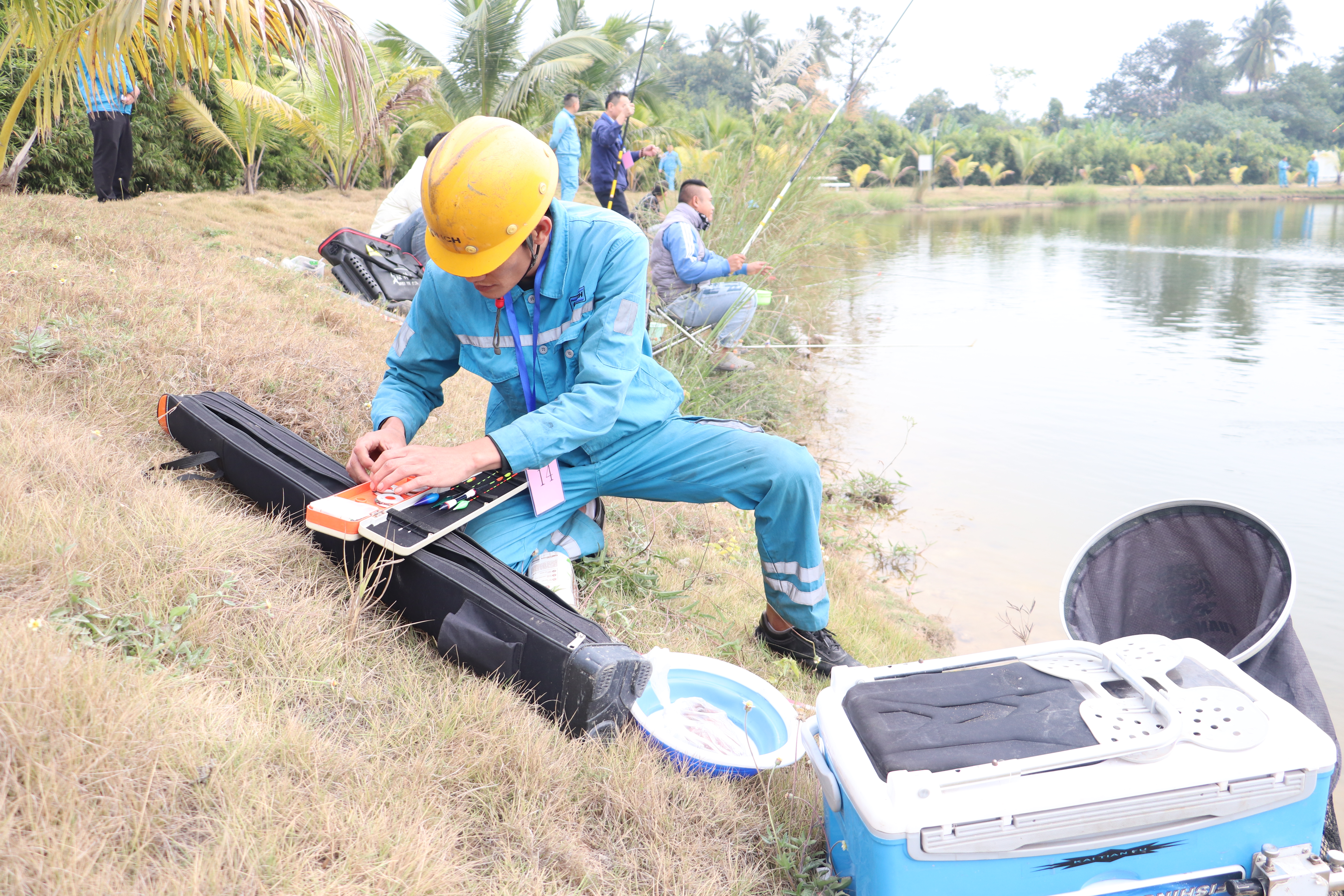 30余名業(yè)余釣魚“高手”在微漾波瀾的湖面嚴陣以待,手里拿著自己精裝的“武器”,在隨著裁判一聲哨響,選手們操作魚竿組裝、裝線、拌餌、掛餌、甩桿,每一個動作都顯得那么流暢和協(xié)調,全神貫注地凝視著湖面的魚漂。