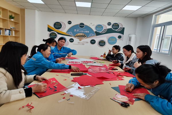 “小剪刀,咔嚓嚓,奶奶在家剪窗花。剪朵梅花五個瓣,剪只喜鵲叫喳喳,剪出雪花漫天撒,剪個福字頭朝下,再剪一個胖娃娃,抱著鯉魚笑哈哈......”,剪窗花是春節(jié)期間不可或缺的傳統(tǒng)習俗之一,是民間藝術的一種獨特表現(xiàn)形式,承載了豐富的文化傳統(tǒng),不僅裝飾了節(jié)日的環(huán)境,增添了喜慶氛圍,還寄托了人們對美好生活的向往和希望。隨著激烈的羽毛球比賽落幕,令人期待已久的剪窗花活動開始了?;顒蝇F(xiàn)場,一張一張紅艷艷的紙張悉數(shù)鋪開,映著職工的笑臉,窗外寒風呼嘯,屋內(nèi)歡聲笑語,暖意洋洋。
