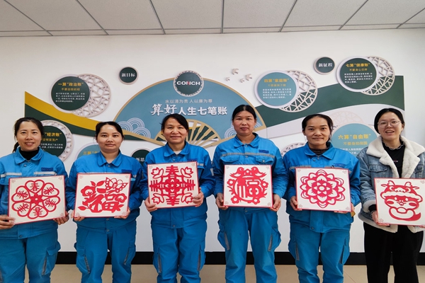 “想不到今年還能領到手工剪裁的窗花,我只有在小時候外婆給我剪過,讓我想起小時候的春節(jié),真是越來越有年味兒了!”一位生產(chǎn)崗位的員工一邊挑選著窗花一邊說道。