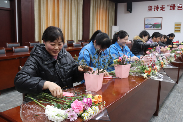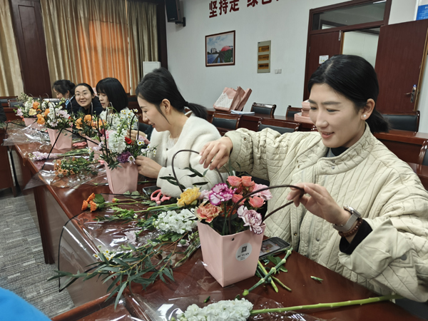 活動現(xiàn)場,花藝老師從鮮花品種、鮮花搭配和造型設(shè)計等方面進行了詳細的講解和現(xiàn)場示范。長桌上鋪滿了各色鮮花與花藝工具,嬌艷的玫瑰、靈動的洋桔梗、素雅的康乃馨……女職工們興致勃勃,邊學邊做,享受著親手創(chuàng)作的樂趣和插花藝術(shù)帶來的快樂。