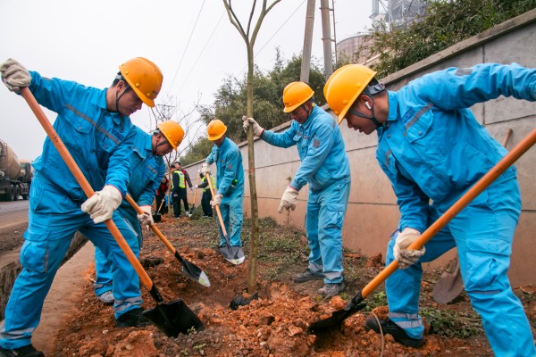 活動(dòng)現(xiàn)場(chǎng),扶綏海螺的20余名職工代表與桂西公路發(fā)展中心黨員干部、青年志愿者分工協(xié)作,揮鍬鏟土、扶苗培土、澆水定根,一派繁忙景象。經(jīng)過(guò)數(shù)小時(shí)勞作,共種植紫花風(fēng)鈴喬木50余株,綠化路段2.5公里,新栽樹苗整齊排列,與去年煥然一新的路面相映成輝,勾勒出“車在綠中行,人在景中游”的生態(tài)畫卷。
