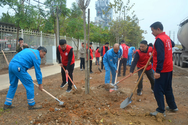3月11日上午,北流海螺與北流市民安鎮(zhèn)黨委、政府、北流市交通運輸局、兩灣北流產(chǎn)業(yè)園管委等部門在公司外X203縣道聯(lián)合開展了一場主題為“政企聯(lián)合,植樹造林,共造藍天綠水青山”的公益植樹活動。