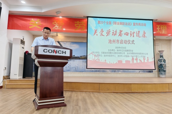 今年4月25日至5月1日是第23個全國《職業(yè)病防治法》宣傳周,本次活動的主題是“關(guān)愛勞動者心理健康”。為全面貫徹黨中央、國務(wù)院關(guān)于加強(qiáng)職業(yè)病防治工作的決策部署,持續(xù)推進(jìn)職業(yè)病防治工作,切實保障廣大勞動者職業(yè)健康權(quán)益,2025年4月25日上午9:00,池州市《職業(yè)病防治法》宣傳周活動啟動儀式在池州海螺會議室舉行。