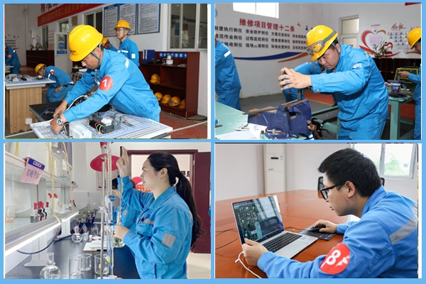 在鉗工、電工、化學(xué)分析工、礦山工程機(jī)械維修工、水泥操作工等比賽現(xiàn)場(chǎng),各參賽選手均全神貫注、目不交睫地完成著自己的項(xiàng)目,向觀摩嘉賓們展現(xiàn)出“海螺工匠”們的專(zhuān)業(yè)與專(zhuān)注。