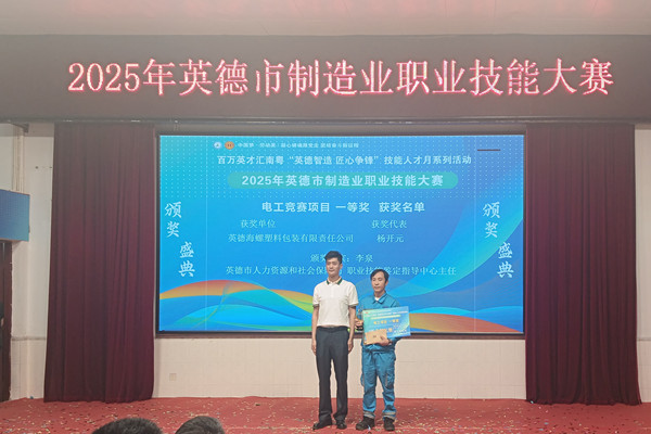 在5月27日落幕的英德市制造業(yè)技能大賽中,英德塑品參賽隊(duì)?wèi){借精湛的專業(yè)技術(shù)脫穎而出,斬獲多個(gè)獎(jiǎng)項(xiàng),為公司贏得了榮譽(yù)、樹(shù)立了良好的對(duì)外形象。其中,設(shè)備保全處楊開(kāi)元榮獲電工項(xiàng)目一等獎(jiǎng),成為全場(chǎng)焦點(diǎn)。