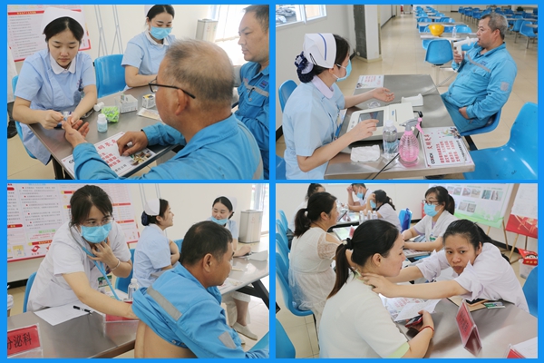 講座結(jié)束后,來自普通外科、內(nèi)分泌科、呼吸內(nèi)科、婦科、中醫(yī)康復(fù)科、檢驗(yàn)科等科室的資深專家在職工食堂一字排開,為員工提供包括血壓血糖檢測(cè)、心肺聽診、B超檢查、中醫(yī)把脈等在內(nèi)的全方位健康服務(wù)。專家們不僅耐心解答各類健康疑問,更針對(duì)水泥行業(yè)常見的職業(yè)健康問題給予了專業(yè)指導(dǎo)。