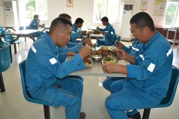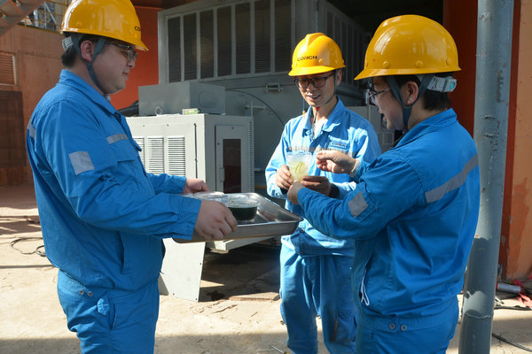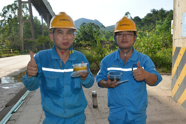 采摘下來的新鮮龍眼和檸檬很快被送往食堂,食堂師傅們忙碌起來,將飽滿多汁的龍眼剝殼取肉,檸檬切片榨汁,熬制當(dāng)?shù)靥禺a(chǎn)涼粉草。龍眼果肉與檸檬片在清冽礦泉水中舒展,釋放出清甜與微酸的完美協(xié)奏;涼粉草熬制的“北流涼粉”,凝凍如墨玉,清涼解暑。天然原料經(jīng)巧手化作兩大消暑佳品——晶瑩剔透的龍眼檸檬水與地道爽滑的“北流涼粉”。冰鎮(zhèn)后的飲品帶著果香與涼意,被后勤人員分裝成杯,及時送到各崗位。
