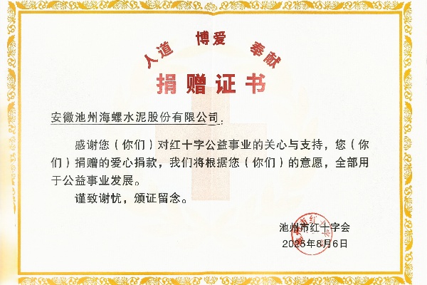 【池州海螺】愛心傳遞溫度,擔當收獲認可——池州海螺獲池州市紅十字會捐贈證書