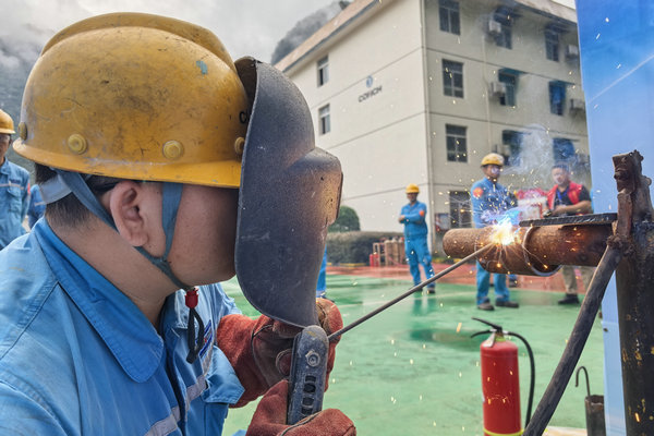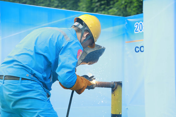 焊接與氧割操作賽區(qū),弧光閃爍,焊花四濺。選手們全神貫注,手持焊槍,穩(wěn)穩(wěn)地對準工件接口。面罩下,是他銳利而專注的眼神。這不僅是力量與技巧的結(jié)合,更是耐心與經(jīng)驗的沉淀,每一朵焊花都在雕琢著“鋼鐵裁縫”追求極致的匠心。